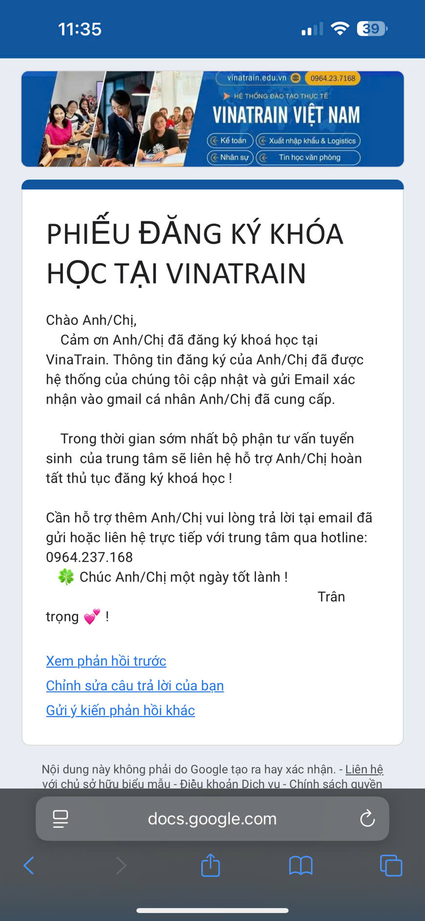 Xin được chia sẻ với các bạn những phản hồi thực tế từ người học tại VinaTrain