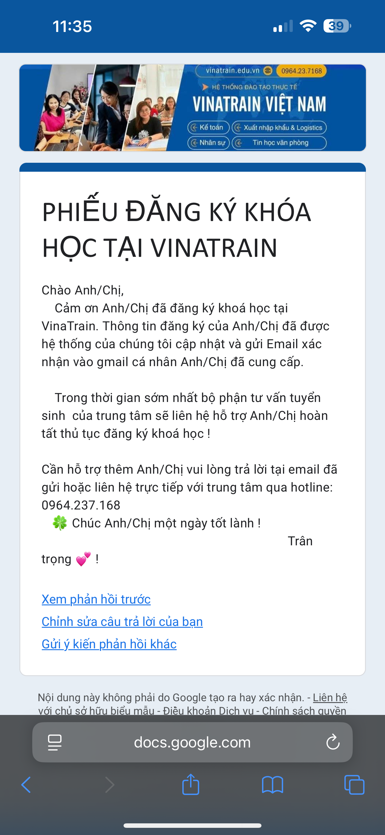 Đăng ký học thử 02 buổi tại VINATRAIN ngay hôm nay, chúng tôi vinh dự được chắp cánh cho ước mơ của bạn