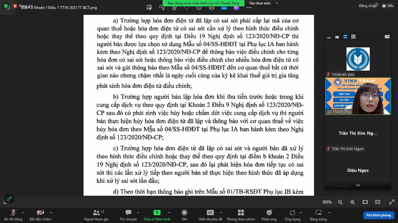 Chào bạn Huy, cảm ơn bạn đã quan tâm tới khóa học kế toán thuế tại VinaTrain. Khóa học kế thuế cơ bản-chuyên sâu hiện tại VinaTrain có đào tạo online tương tác trực tuyến qua zoom, sau mỗi buổi có video ghi lại. Bạn quan tâm tới khóa học vui lòng liên hệ với trung tâm zalo 0964237168/0931705774 để nhận tư vấn rõ hơn nhé 🙂