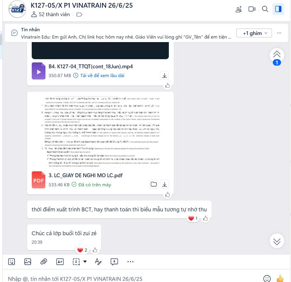 Mình đang học khóa này được 2 buổi rồi, nội dung khá sát thực tế, đặc biệt phần xử lý chứng từ trong L/C và SWIFT code học xong áp dụng được luôn.
